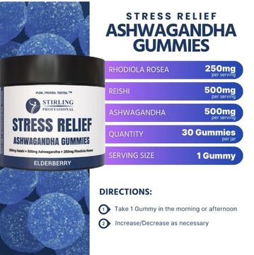 Stirling’s Stress Relief Ashwagandha Gummies contain a blend of Reishi, Ashwagandha, and Rhodiola. A fantastic choice for patients looking to naturally reduce stress, promote mental clarity, emotional balance, relaxation to enhance overall well-being.
