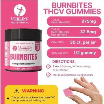Stirling’s BurnBites THCV Gummies, are designed to support patients dealing with metabolic challenges, enhance focus and energy while suppressing cravings and appetite. Perfect for patients looking to achieve their weight management and overall wellness goals.