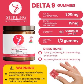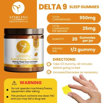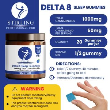 Stirling’s Delta 9 sleep gummies contain Delta 8, CBN, and CBD combined to support restful sleep. Ideal for patients struggling with sleep disturbances, these gummies help promote relaxation and improve sleep quality.