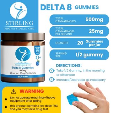 Stirling’s Delta 8 Gummies are Ideal for those seeking mild mood enhancement and a calm mind. An excellent choice for patients who are new to Delta 8.