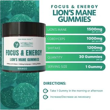 Stirling’s Lion’s Mane Gummies are designed to optimize mental clarity, natural energy, and overall well-being. Containing Lion’s Mane, Cordyceps, and Shiitake mushrooms, these are an amazing option for patients looking for a holistic approach to health and wellness.